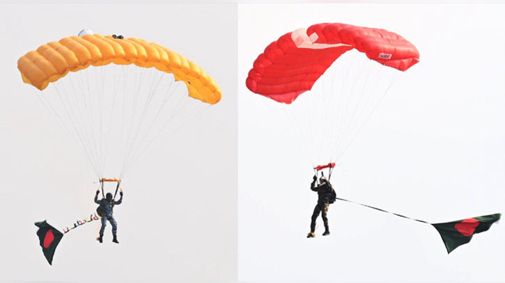 মঙ্গলবার (১৬ ডিসেম্বর) বেলা ১২টার দিকে তেজগাঁও পুরাতন বিমানবন্দরে বিজয় দিবসের অনুষ্ঠানে এই প্যারাস্যুটিং করা হয়।