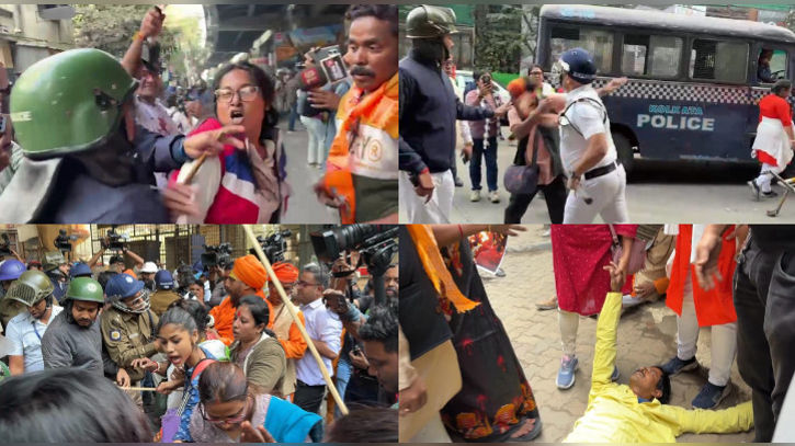 কলকাতায় বাংলাদেশ উপদূতাবাসের বাইরে হিন্দুত্ববাদীদের বিক্ষোভ-সংঘর্ষ