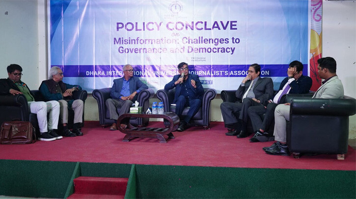 সোমবার (২ ফেব্রুয়ারি) ঢাকা ইন্টারন্যাশনাল ইউনিভার্সিটির কেন্দ্রীয় অডিটোরিয়ামে ‘পলিসি কনক্লেভ অন মিসইনফরমেশন: চ্যালেঞ্জেস টু গভর্ন্যান্স অ্যান্ড ডেমোক্রেসি’ শীর্ষক নীতিসংলাপে এসব কথা বলেন তিনি।