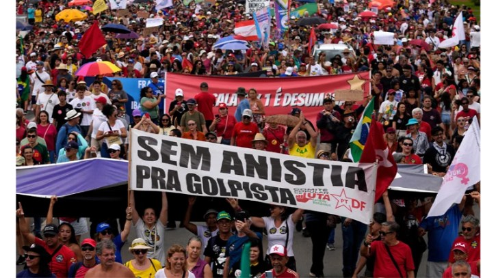 ব্রাজিলের বিভিন্ন শহরে গতকাল রোববার হাজার হাজার মানুষ বিক্ষোভে অংশ নিয়েছে। দেশটির প্রাক্তন প্রেসিডেন্ট জাইর বলসোনারোর সাজা কমানোর একটি বিলের বিরুদ্ধে তাদের এই বিক্ষোভ। অভ্যুত্থানের ষড়যন্ত্রের অভিযোগে বলসোনারো ইতোমধ্যেই দোষী সাব্যস্ত হয়েছেন।
