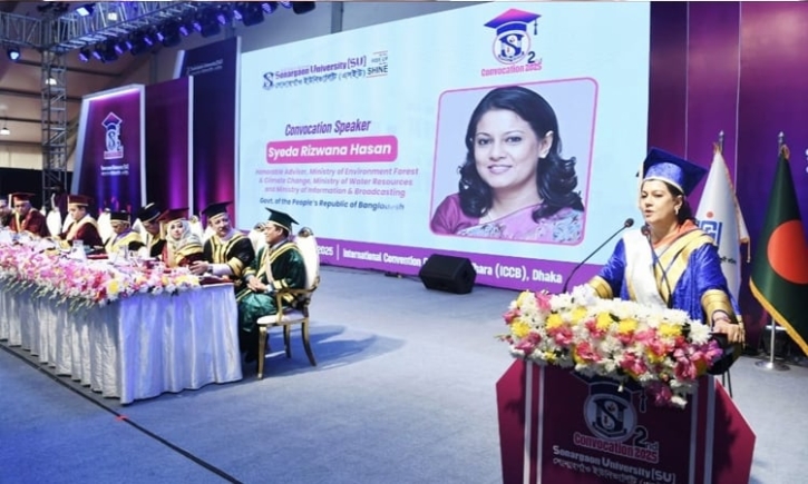 ডিগ্রি অর্জনের মূল লক্ষ্য কেবল ভালো বেতন বা সুযোগ-সুবিধা পাওয়া নয়, বরং পরিবার, সমাজ, দেশ ও প্রকৃতির প্রতি দায়িত্ববোধ নিয়ে কর্মজীবনে প্রবেশ করাই হওয়া উচিত নতুন প্রজন্মের প্রধান অঙ্গীকার। পরিবেশ, বন ও জলবায়ু পরিবর্তন; পানি সম্পদ এবং তথ্য ও সম্প্রচার মন্ত্রণালয়ের উপদেষ্টা সৈয়দা রিজওয়ানা হাসান আজ এ কথা বলেন।