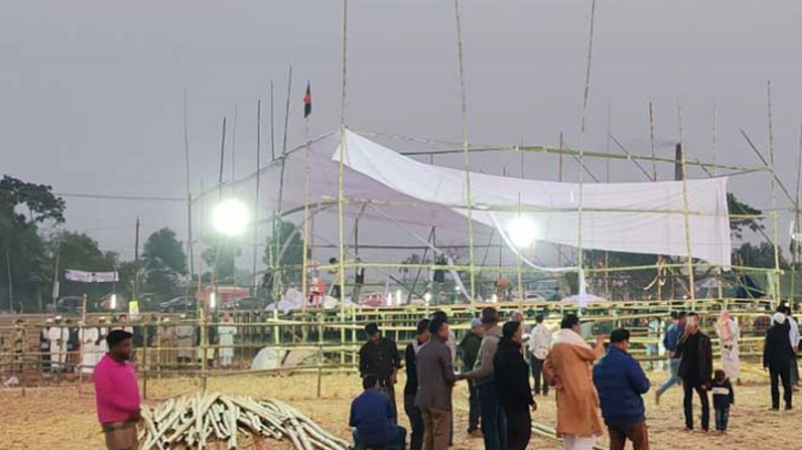 সমাবেশস্থলগুলোতে মঞ্চ ও প্যান্ডেল নির্মাণের কাজ প্রায় শেষ পর্যায়ে; নেতাকর্মীদের উপস্থিতিতে মুখর হয়ে উঠেছে এলাকা।