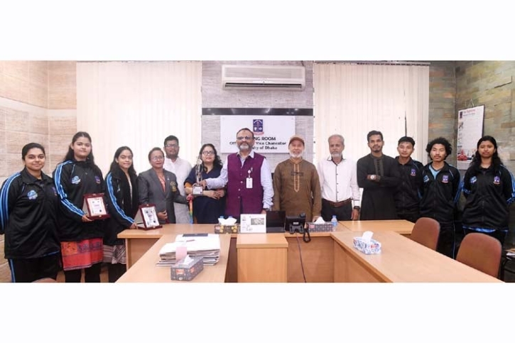 বিশ্ববিদ্যালয় প্রশাসনের পক্ষ থেকে গতকাল বুধবার ঢাকা বিশ্ববিদ্যালয় টেবিল টেনিস দলকে সংবর্ধনা প্রদান করা হয়। উপাচার্যের সভাকক্ষে আয়োজিত সংবর্ধনা অনুষ্ঠানে ঢাকা বিশ্ববিদ্যালয়ের উপাচার্য অধ্যাপক ড. নিয়াজ আহমদ খান প্রধান অতিথি এবং প্রো-ভাইস চ্যান্সেলর (প্রশাসন) অধ্যাপক ড. সায়মা হক বিদিশা বিশেষ অতিথি হিসেবে উপস্থিত ছিলেন। এছাড়া শারীরিক শিক্ষা কেন্দ্রের উপদেষ্টা অধ্যাপক ড. এস এম মোস্তফা আল মামুন, শারীরিক শিক্ষা কেন্দ্রের ভারপ্রাপ্ত পরিচালক এস এম জাকারিয়া, টেবিল টেনিস কমিটির সভাপতি অধ্যাপক ড. মো. আবুল কালাম সরকার, টেবিল টেনিস ইনচার্জ শারীরিক শিক্ষা কেন্দ্রের উপ-পরিচালক ড. সালমা আরজু ও ডাকসু’র ক্রীড়া সম্পাদক আরমান হোসেন এসময় উপস্থিত ছিলেন।